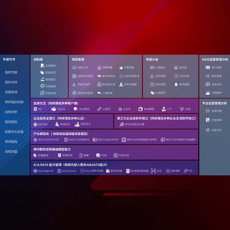 医疗器械产品上市前,,,,要熟悉严格与繁复评审标准,,整理分析监管机构指导文件中的海量信息。。。企业急需一个智能化解决方案,,,提升知识管理效率,,,提高评审通过率,,,以提升其市场竞争力。。。